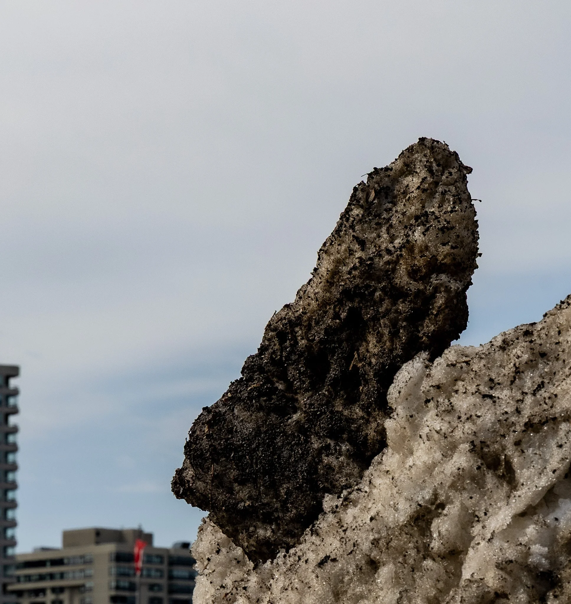 The size and scale of the city snow dumps were extraordinary and unexpected. The mountain ranges and peaks of Iceland or ‘Mordor’ of the Lord of the Rings are created by snow removal every year. Created from snow, ice, gravel, calcium, salt, tar, rubber and rubbish. And then they disappear by summer only to be re-created next winter…